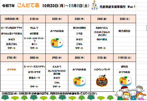 本⽇の給⾷、活動報告、イベント、お休みのご案内、療育コラムなどこちらのお知らせより発信していきます。