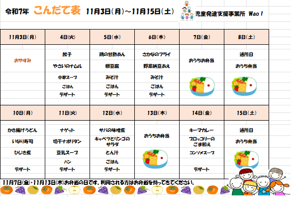 児童発達⽀援事業所 Wao!からのお知らせになります。 本⽇の給⾷、活動報告、イベント、お休みのご案内、療育コラムなどこちらのお知らせより発信していきます。