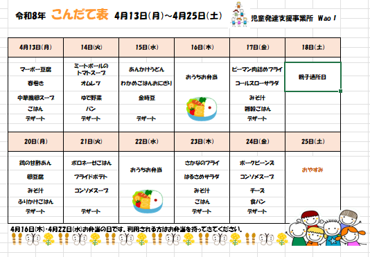 児童発達⽀援事業所 Wao!からのお知らせになります。 本⽇の給⾷、活動報告、イベント、お休みのご案内、療育コラムなどこちらのお知らせより発信していきます。