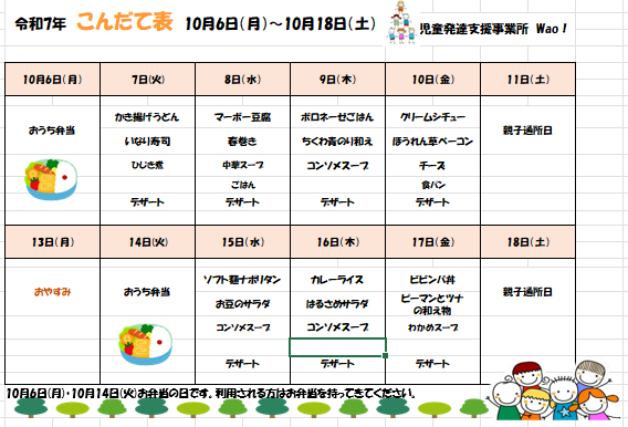 児童発達⽀援事業所 Wao!からのお知らせになります。 本⽇の給⾷、活動報告、イベント、お休みのご案内、療育コラムなどこちらのお知らせより発信していきます。