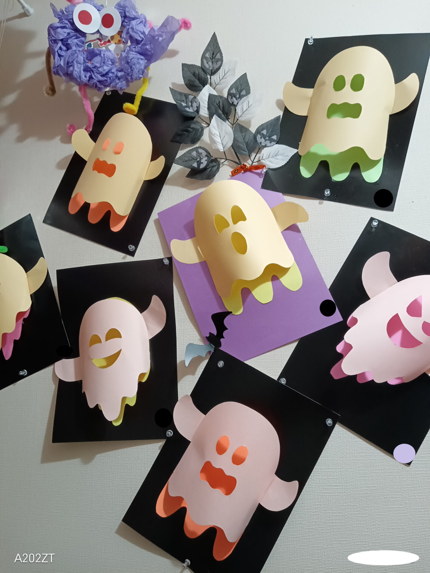 次は、飛び出すおばけ!黒の台紙から飛び出てくるお化けは迫力満点👻