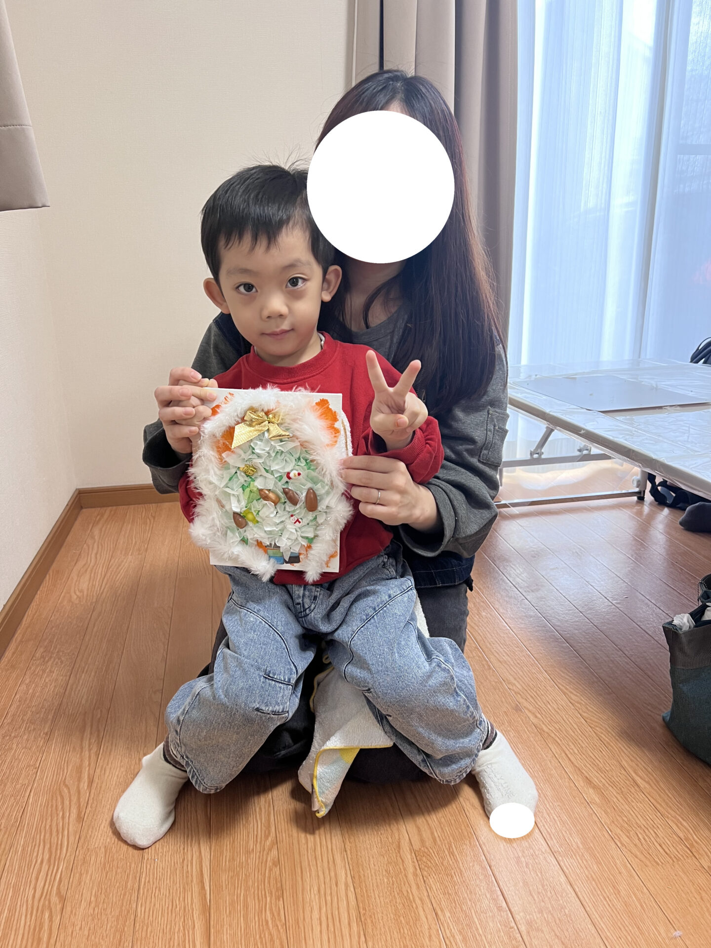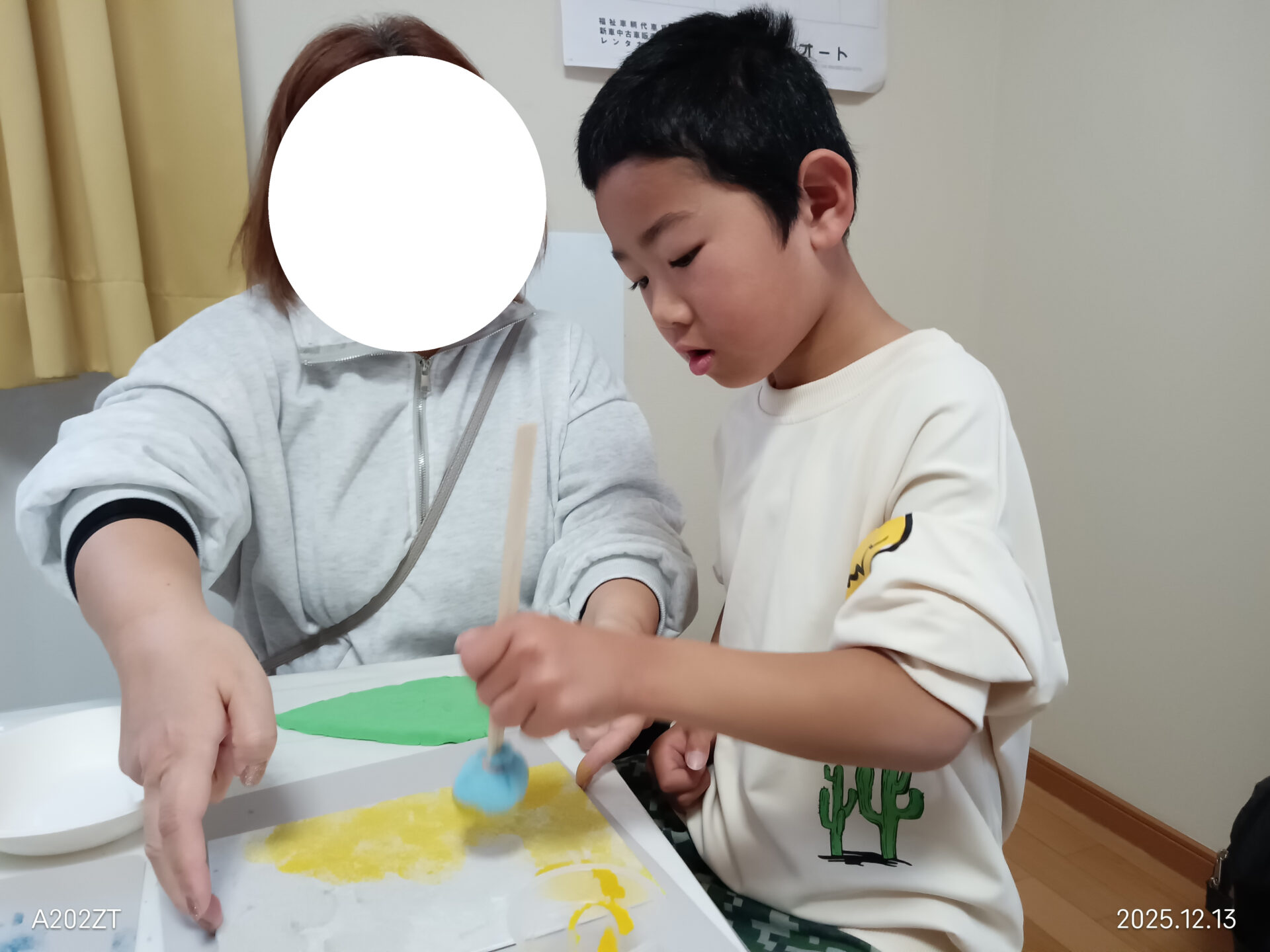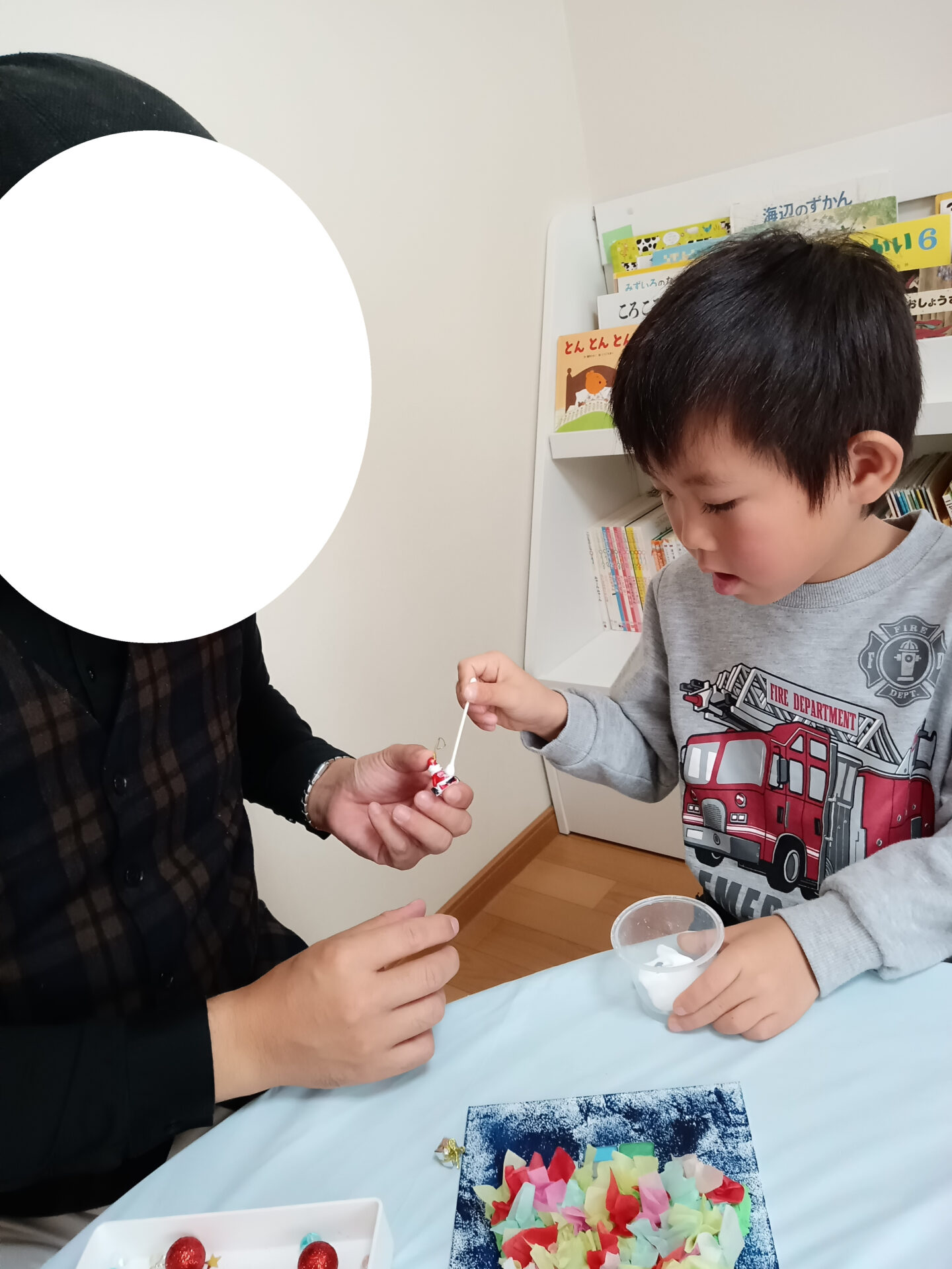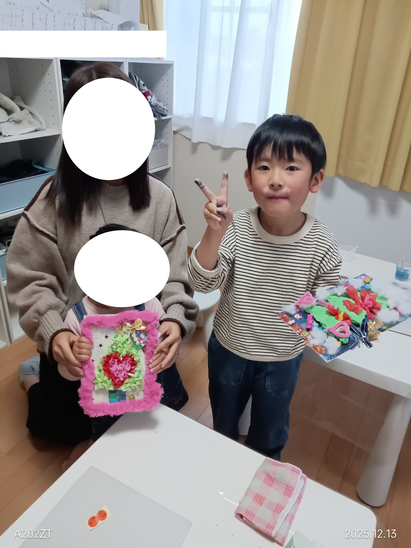 先週に引き続き、親子通所日「クリスマス飾りを作ろう」と題してクリスマスツリーボードを作りました🎄