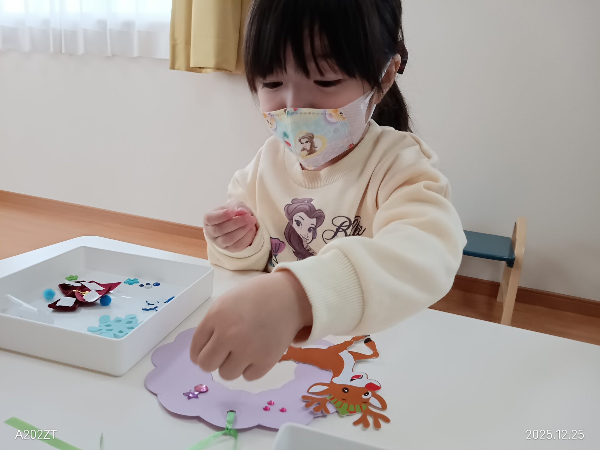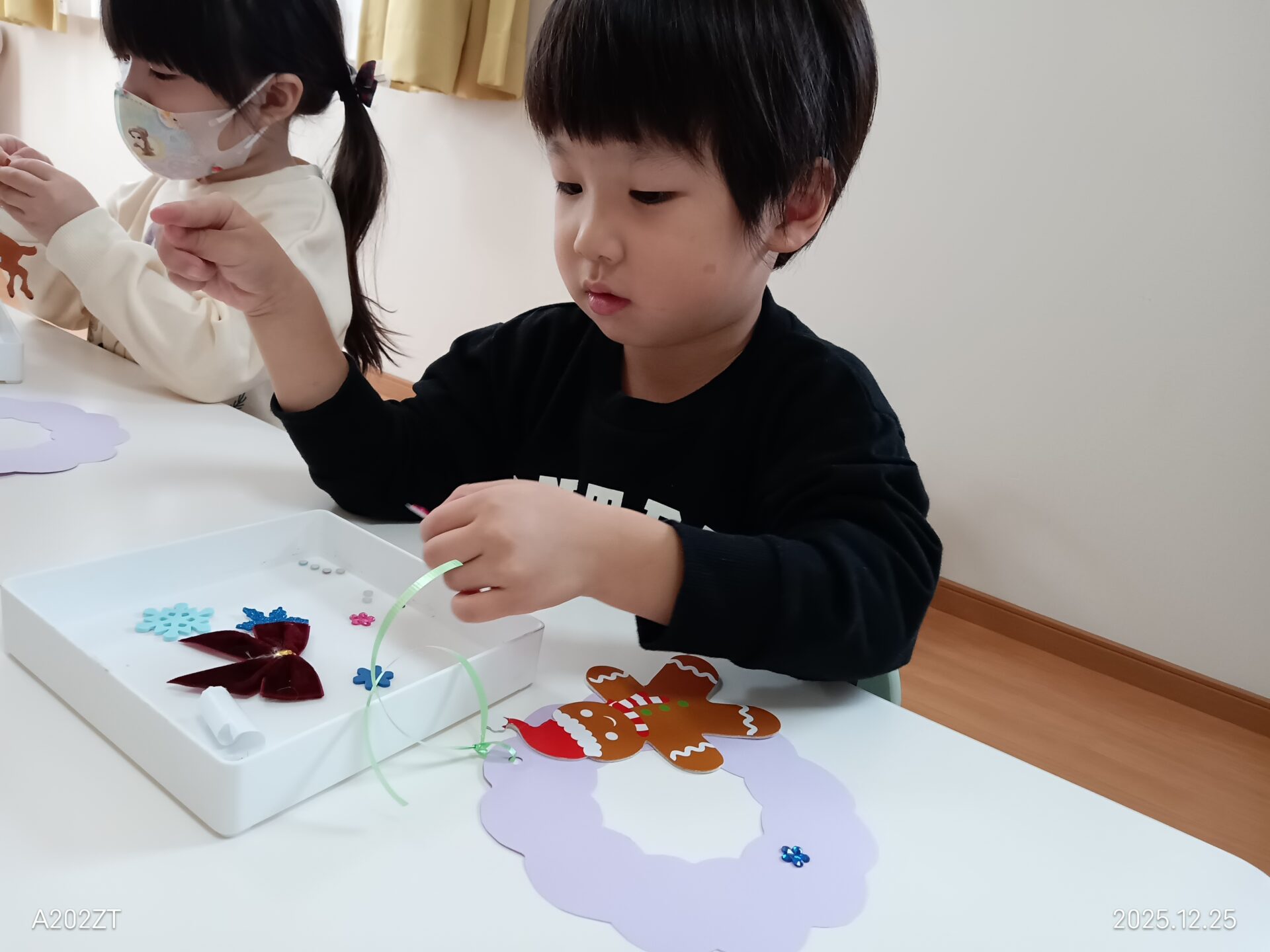 リース作りでは丸と星のビーズを組み合わせて「クリスマスツリー」を作ったり、一人一人の素敵な作品ができあがりました☆