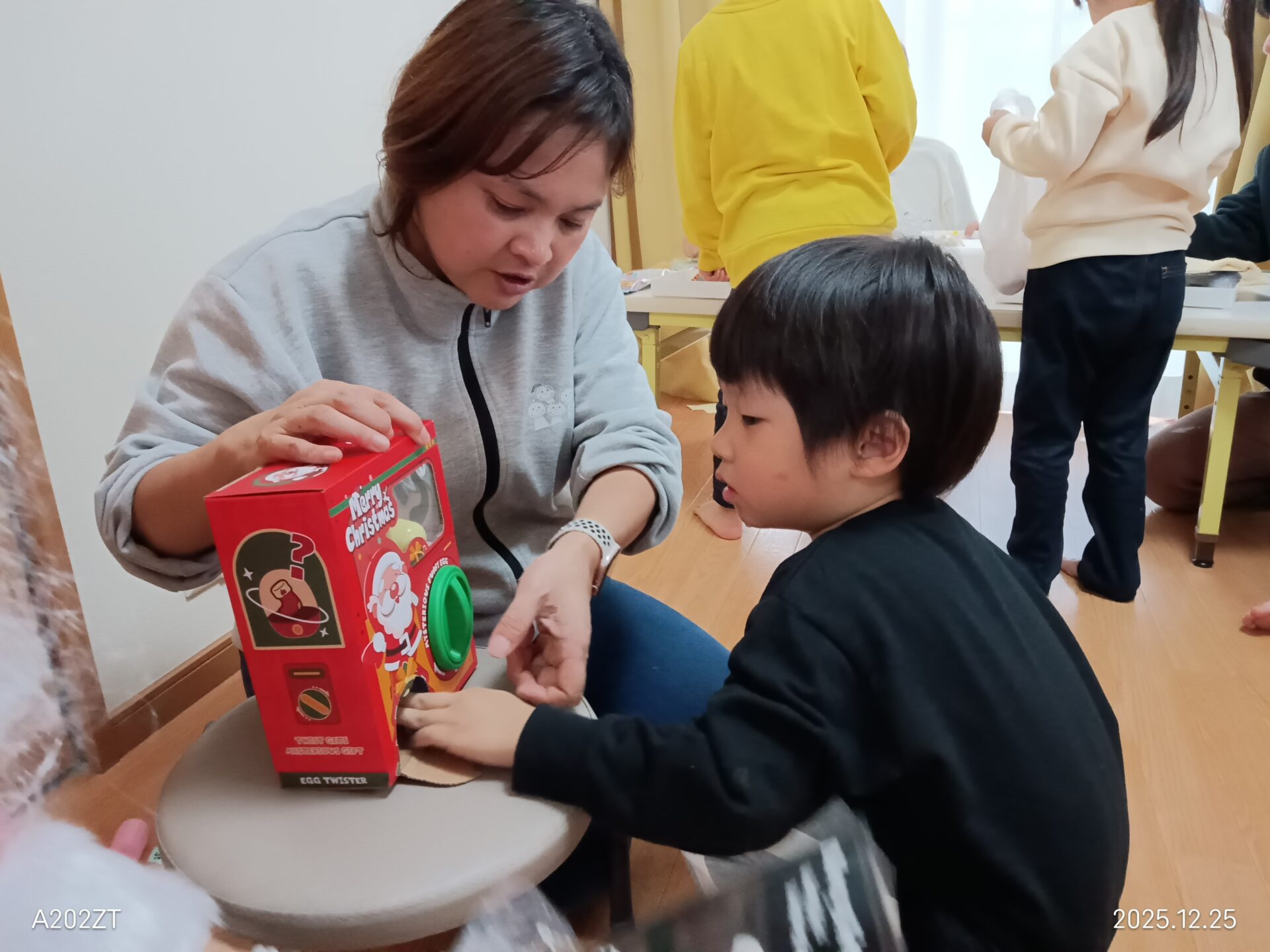 サンタさんが来てプレゼントをもらい、ガチャガチャを回しました🎁