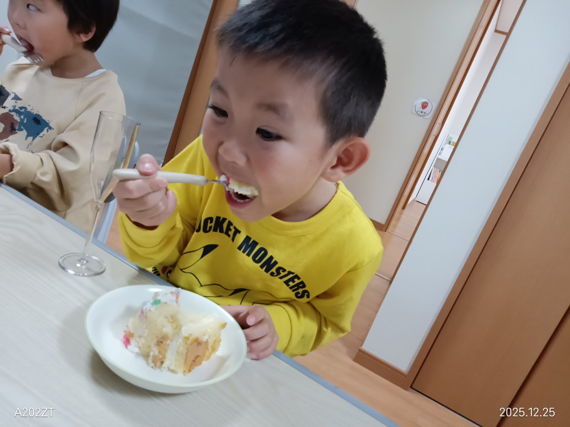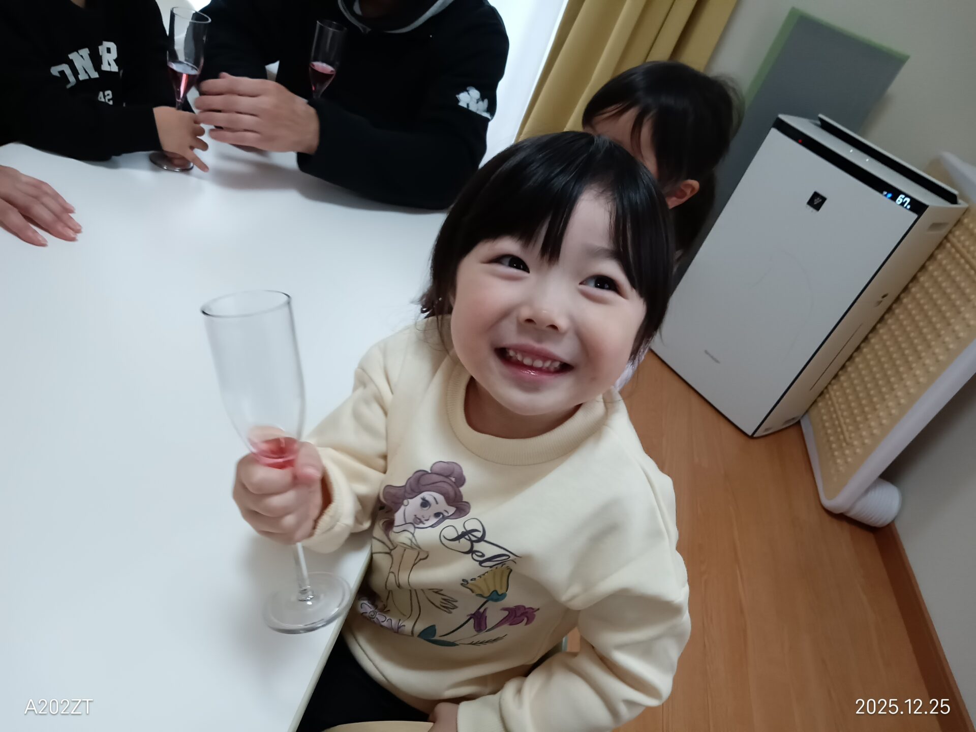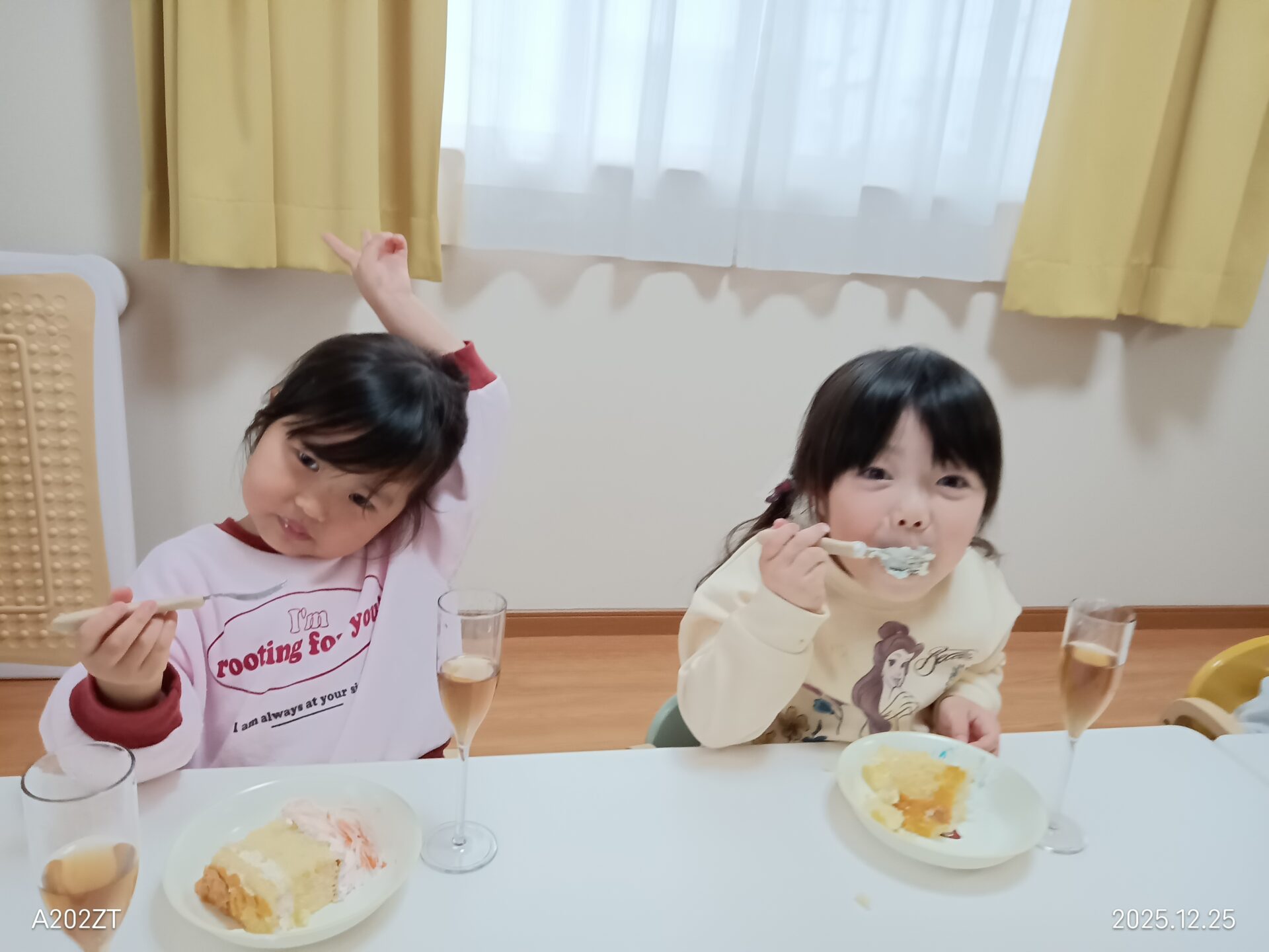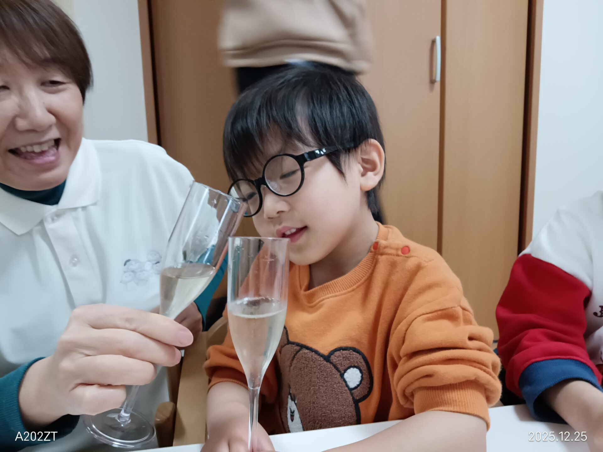 シャンパングラスで乾杯して、みんなでクリスマスケーキを食べました🍰