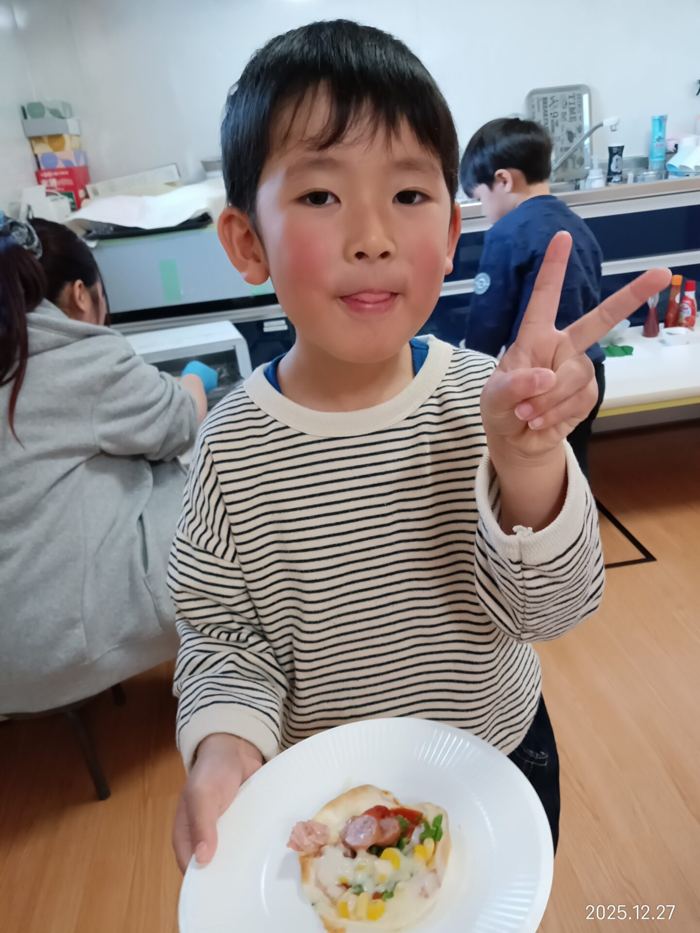 ピザづくりを行い、自分で好きな具材を乗せました✌