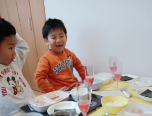 いただきますの前に「今年も色々頑張りました!来年もよろしくね!」と、みんなで乾杯🥂