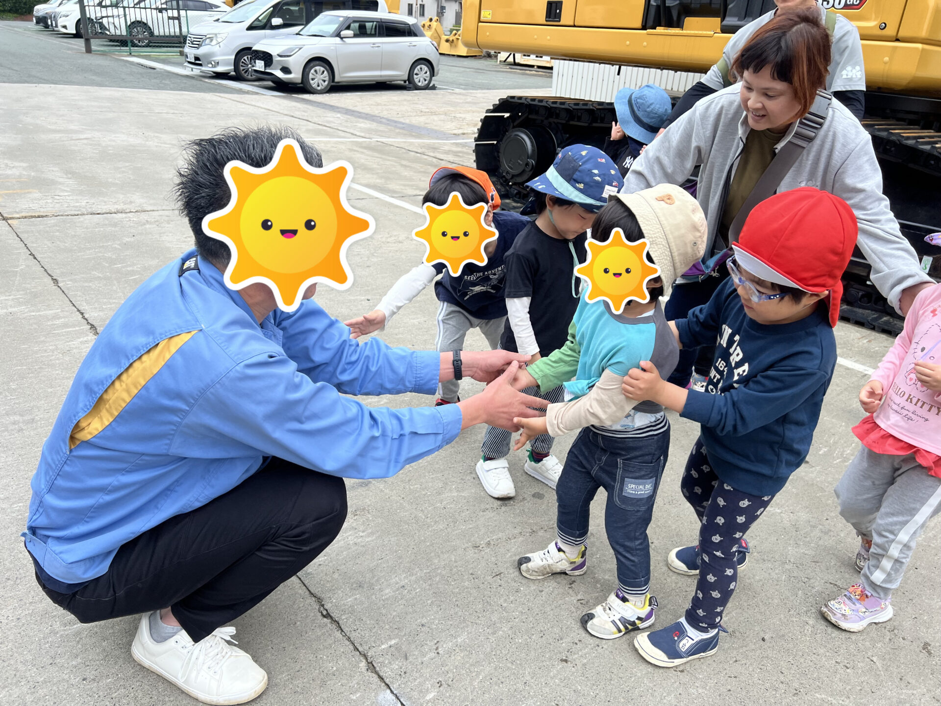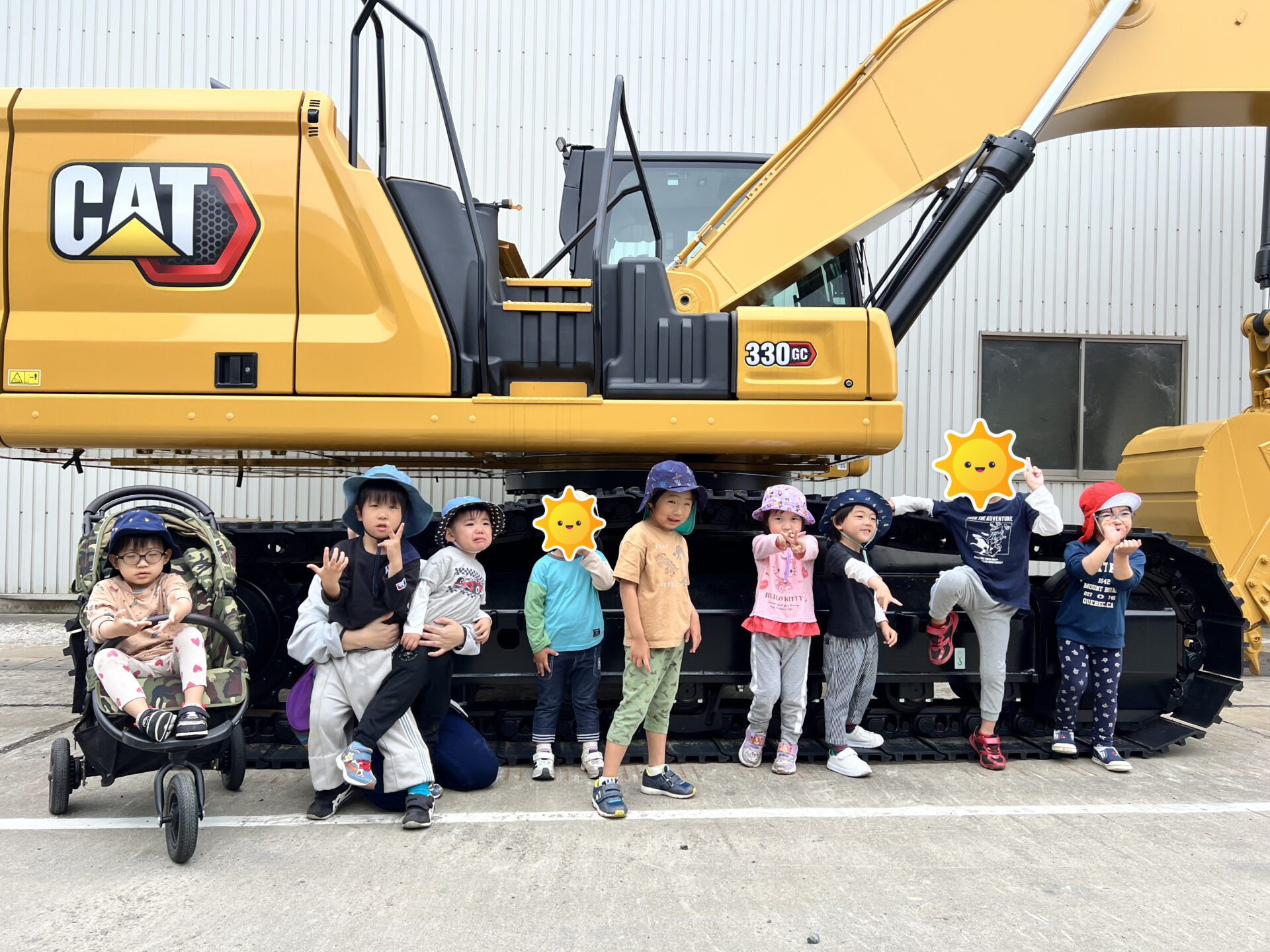 ショベルカーの前に立つと子どもたちが小さく見えます。
