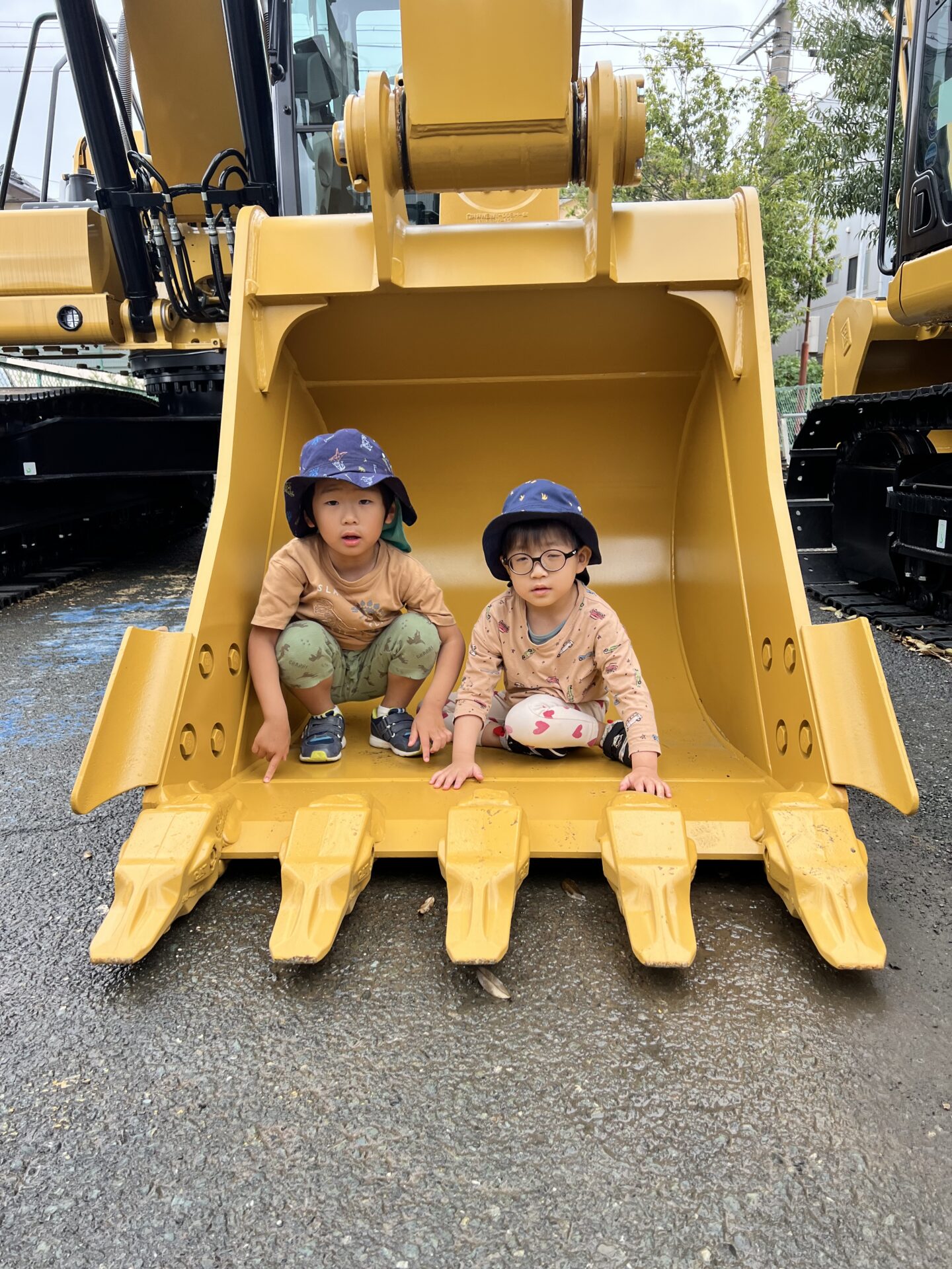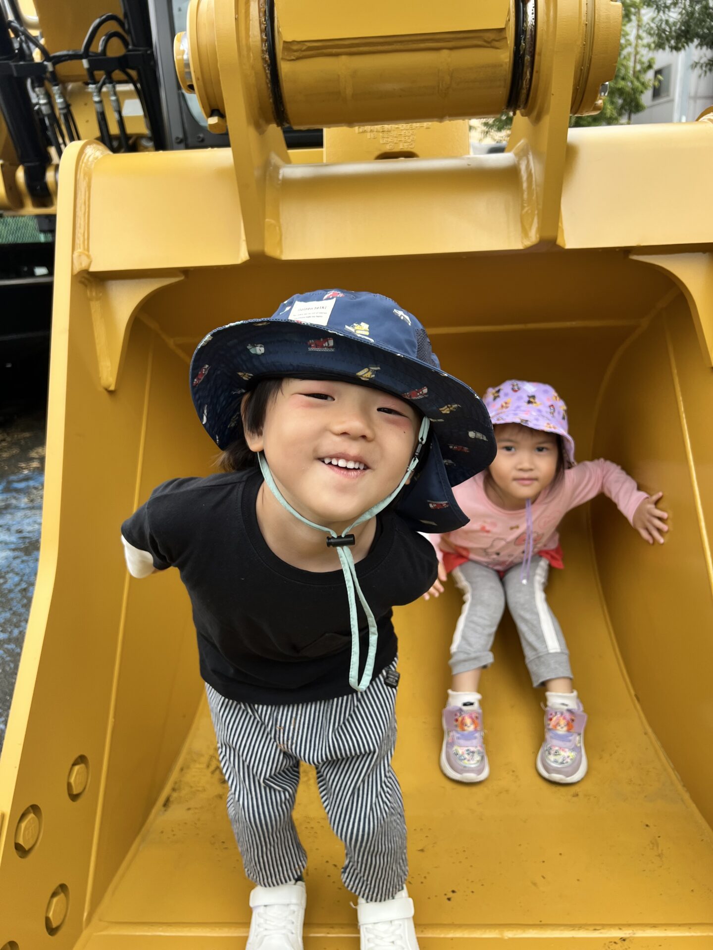 ショベルカーのスコップの中に入ったり、運転席に座らせてもらったりしました。